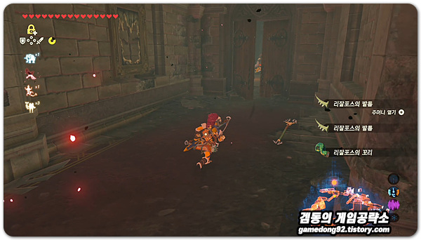 위 사진에 보이는 문으로 진입하면 가논과의 보스전이 펼쳐지니 여기로 들어지마시고, 리발의 용맹을 이용해 한층 더 올라가야 합니다.