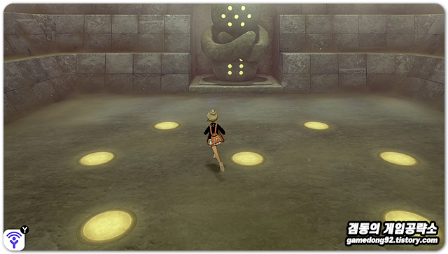 바로 유적 입구의 상단에 있던 그림대로 발판을 밟으면 발판에 해당되는 포켓몬이 등장하는 방식인데요.