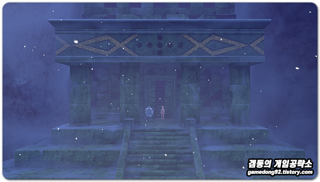 프리지오를 세팅한 후 문에 상호작용을 하면 내부로 진입할 수 있으며, 마찬가지로 바닥의 조명을 모두 점등시키고 조각상과 상호작용을 하면 레지아이스가 나타납니다.