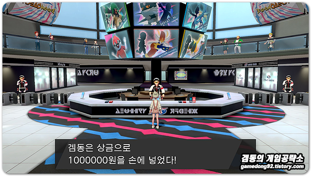 엔딩크레딧 종료 후 토너먼트 승리 보상으로 게임세트와 상금 100만 원을 획득합니다. (2회 차부터는 상금이 8만 원으로 고정되며, 거다이맥스 나옹을 이용하면 회단 50만 원 정도를 얻을 수 있는 짭짤한 수입원이 됩니다.)