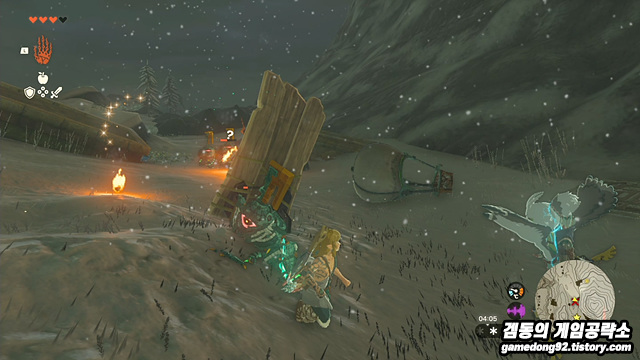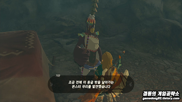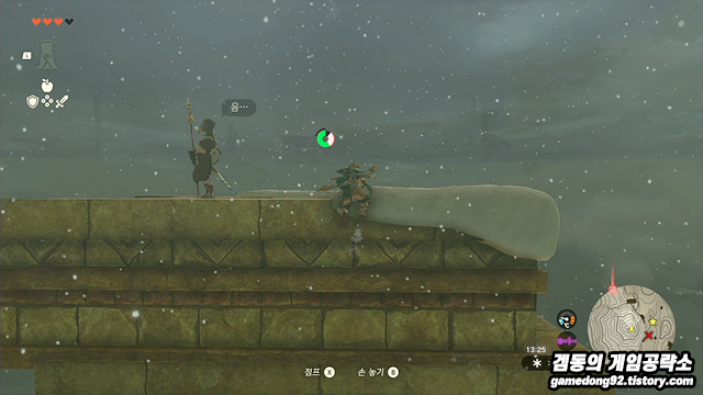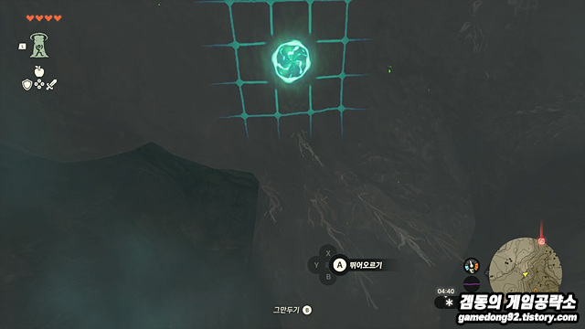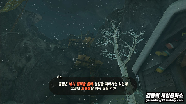 준비를 마친 뒤, 하츠가 알려준 대로 등반하다 보면 헤브라 산 남쪽 정상의 동굴을 발견하게 됩니다.
